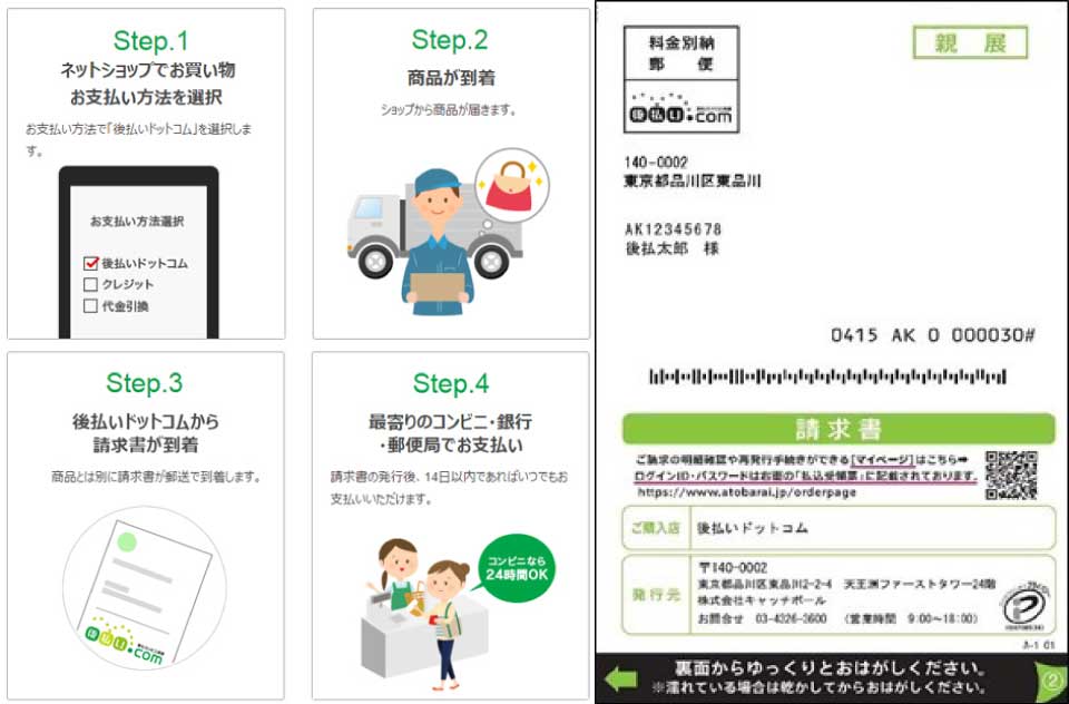 ※商品のお届けとご請求書のお届けは別になります。翌月初めに、「後払い.com」より請求書をお届けします。