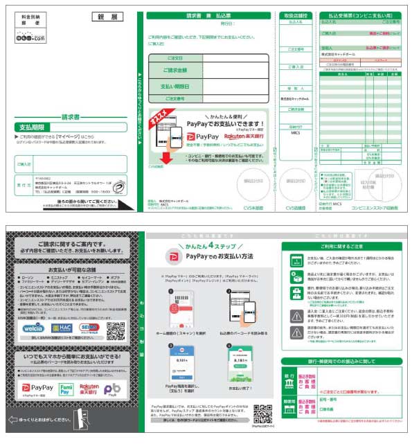 後払い(コンビニ・スマホ決済・郵便振替・銀行振込・PayPay請求書払い)